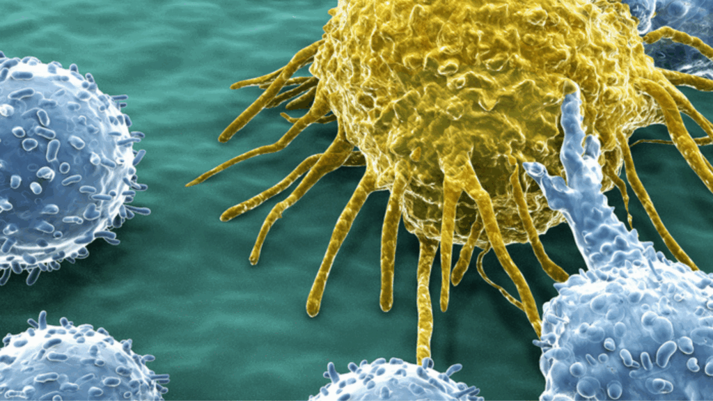 健康な状態であれば免疫細胞ががん細胞を排除しますが、がん細胞が増加してくると免疫細胞にブレーキをかけて攻撃から逃れる細胞が出てきます。